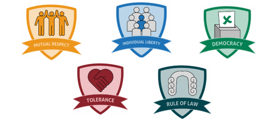 British Values underpin what it is to be a citizen in a modern and diverse Britain. They allow us to create environments free from discrimination, intolerance and hate. They help us to challenge prejudice and stereotyping, whilst strengthening relationships within the community.